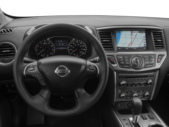 2017 Nissan Pathfinder SV 4WD, 3rd row seats: bench, 4-Piece Black Splash Guards, 4-Wheel Disc Brakes, 5.25 Axle Ratio, 6 Speakers, ABS brakes, Air Conditioning, Alloy wheels, AM/FM radio: SiriusXM, Auto-dimming Rear-View mirror, Automatic temperature control, Blind Spot Warning, Brake assist, Bumpers: body-color, Cargo Package, Carpeted Floor Mats (4-pc Set), CD player, Cloth Seating Surfaces, Compass, Cross Bars, Delay-off headlights, Driver door bin, Driver vanity mirror, Dual front impact airbags, Dual front side impact airbags, Electronic Stability Control, First Aid Kit, Four wheel independent suspension, Front anti-roll bar, Front Bucket Seats, Front Center Armrest, Front dual zone A/C, Front fog lights, Front reading lights, Fully automatic headlights, Garage door transmitter: HomeLink, Heated Front Cloth Seats, Heated Outside Rear-View Mirrors, Heated Steering Wheel, Illuminated entry, Leather Shift Knob, Leather steering wheel, Low tire pressure warning, Occupant sensing airbag, Outside temperature display, Overhead airbag, Overhead console, Panic alarm, Passenger door bin, Passenger vanity mirror, Power door mirrors, Power driver seat, Power steering, Power windows, Radio data system, Radio: AM/FM/CD Audio System w/NissanConnect, Rear air conditioning, Rear anti-roll bar, Rear Parking Sensors, Rear reading lights, Rear seat center armrest, Rear window defroster, Rear window wiper, Reclining 3rd row seat, Remote keyless entry, Roof rack: rails only, Security system, Speed control, Speed-sensing steering, Speed-Sensitive Wipers, Split folding rear seat, Spoiler, Steering wheel mounted audio controls, SV Cold Weather Package, Tachometer, Telescoping steering wheel, Tilt steering wheel, Tonneau Cover, Traction control, Trip computer, Turn signal indicator mirrors, Variably intermittent wipers, Wheels: 18 Machined Alloy w/Lt Gun Metal Finish, 4WD. 19/26 City/Highway MPG