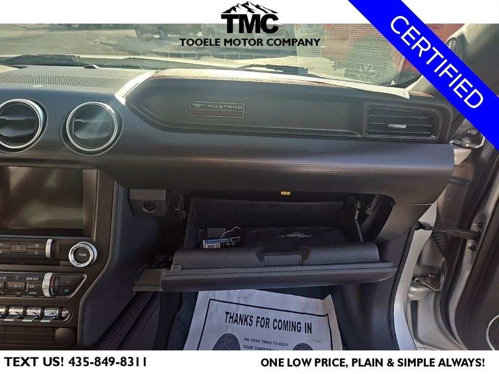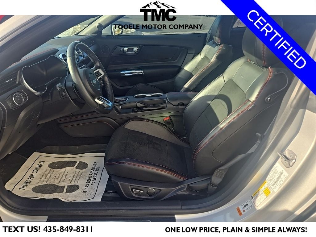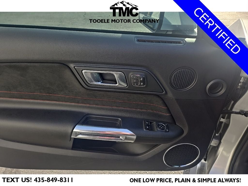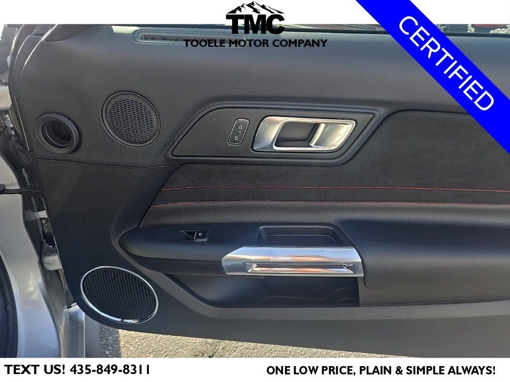 Certified. CARFAX One-Owner. 2019 Ford Mustang GT Premium California Special Odometer is 7331 miles below market average! Priced below KBB Fair Purchase Price! Ford Gold Certified Certified, Blind Spot Info System w/Cross-Traffic Alert, California Special Instrument Panel Applique Badge, California Special Package, California Special Script Rear Badging, Electronic Stability Control, Equipment Group 401A, Exterior Parking Camera Rear, Floor Mats w/Red Contrast Stitching, Leather Bucket Seats w/Color Accents, Leather-Trimmed Bucket Seats w/Miko Suede Inserts, Memory Driver Seat, Mirrors & Ambient Lighting, Miko Suede Door Inserts w/Red Contrast Stitching, Pedestal Rear Spoiler, Power driver seat, SiriusXM Radio, Unique Front Grilles w/Offset Tri-Bar Pony Logo, Wheels: 19 x 8.5 Machined-Face Aluminum, 4-Wheel Disc Brakes, 9 Speakers, ABS brakes, Air Conditioning, Alloy wheels, AM/FM radio: SiriusXM, AM/FM Stereo, AppLink/Apple CarPlay and Android Auto, Auto-dimming Rear-View mirror, Automatic temperature control, Brake assist, Bumpers: body-color, Climate Controlled Heated/Cooled Front Seats, Compass, Delay-off headlights, Driver door bin, Driver vanity mirror, Dual front impact airbags, Dual front side impact airbags, Emergency communication system: 911 Assist, Four wheel independent suspension, Front anti-roll bar, Front Bucket Seats, Front Center Armrest, Front dual zone A/C, Front fog lights, Front reading lights, Fully automatic headlights, Garage door transmitter, Heated door mirrors, Heated front seats, Illuminated entry, Knee airbag, Leather Bucket Seats, Leather Shift Knob, Low tire pressure warning, Occupant sensing airbag, Outside temperature display, Overhead airbag, Overhead console, Panic alarm, Passenger door bin, Passenger vanity mirror, Power door mirrors, Power passenger seat, Power steering, Power windows, Radio data system, Rear anti-roll bar, Rear window defroster, Remote keyless entry, Security system, Speed control, Speed-sensing steering, Speed-Sensitive Wipers, Split folding rear seat, Spoiler, Steering wheel mounted audio controls, SYNC 3 Communications & Entertainment System, Tachometer, Telescoping steering wheel, Tilt steering wheel, Traction control, Trip computer, Turn signal indicator mirrors, Variably intermittent wipers, Ventilated front seats, Voltmeter, Wheels: 18 x 8 Machined-Face Aluminum, Blind Spot Info System w/Cross-Traffic Alert, California Special Instrument Panel Applique Badge, California Special Package, California Special Script Rear Badging, Electronic Stability Control, Equipment Group 401A, Exterior Parking Camera Rear, Floor Mats w/Red Contrast Stitching, Leather Bucket Seats w/Color Accents, Leather-Trimmed Bucket Seats w/Miko Suede Inserts, Memory Driver Seat, Mirrors & Ambient Lighting, Miko Suede Door Inserts w/Red Contrast Stitching, Pedestal Rear Spoiler, Power driver seat, SiriusXM Radio, Unique Front Grilles w/Offset Tri-Bar Pony Logo, Wheels: 19 x 8.5 Machined-Face Aluminum.