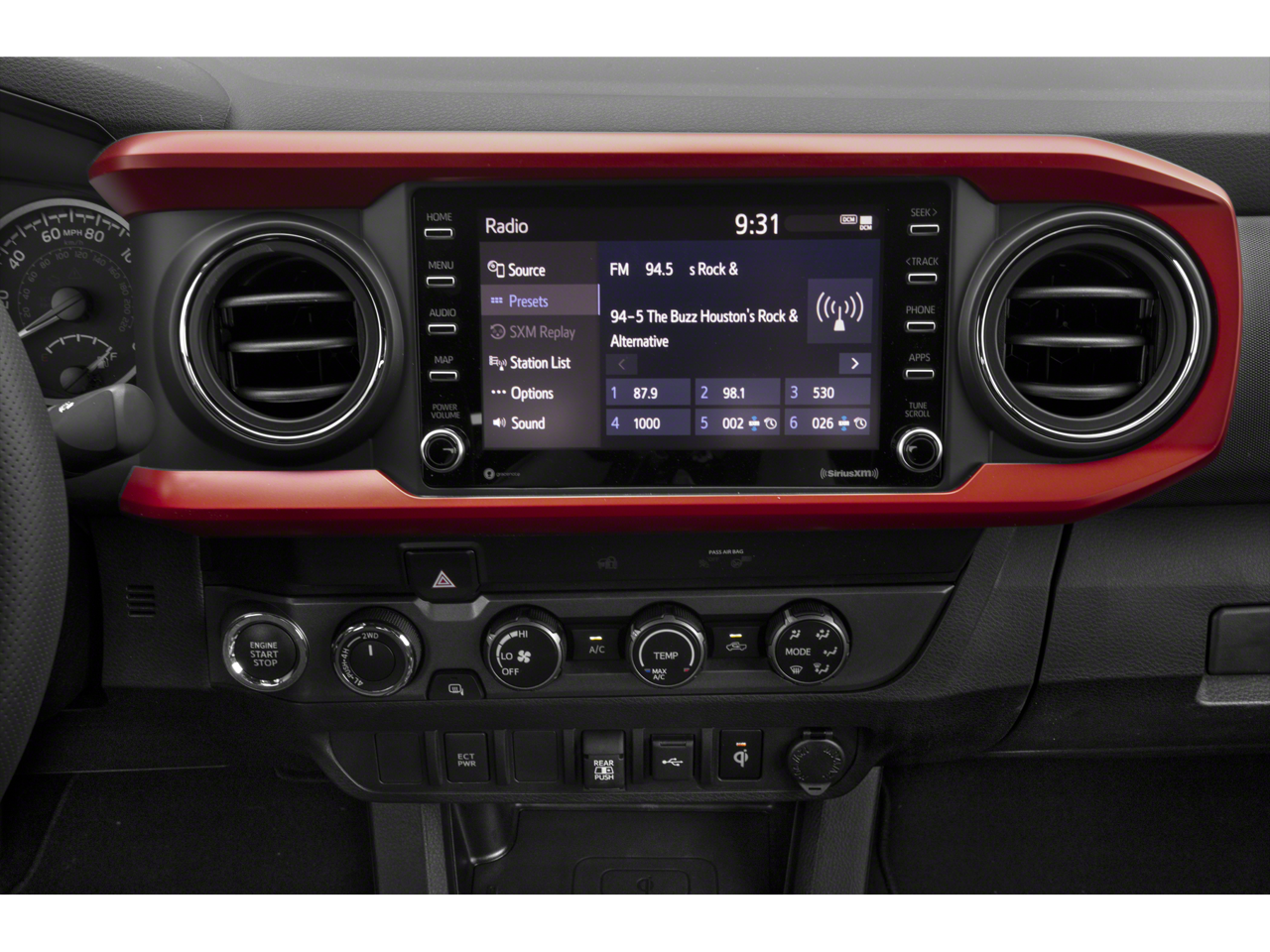 Clean CARFAX. 2020 Toyota Tacoma TRD Sport V6 4WD, 120V/400W Deck Mounted AC Power, 6 Speakers, ABS brakes, Air Conditioning, Alloy wheels, AM/FM radio: SiriusXM, Anti-whiplash front head restraints, Apple CarPlay/Android Auto, Auto High-beam Headlights, Auto-dimming Rear-View mirror, Axle Ratio: 3.91, Blind Spot Monitor w/Rear Cross Traffic Alert, Brake assist, Bumpers: body-color, Color-Keyed Overfenders, Driver door bin, Dual front impact airbags, Dual front side impact airbags, Dual Zone Automatic Climate Control, Electronic Stability Control, Emergency communication system: Safety Connect with 1-year trial, Engine Immobilizer, Exterior Parking Camera Rear, Fabric Seat Trim (FD), Front anti-roll bar, Front Bucket Seats, Front Center Armrest, Front fog lights, Front reading lights, Front wheel independent suspension, Heated door mirrors, Illuminated entry, Knee airbag, Leather Seat Trim, Leather Shift Knob, Low tire pressure warning, Occupant sensing airbag, Outside temperature display, Overhead airbag, Overhead console, Panic alarm, Passenger door bin, Power door mirrors, Power driver seat, Power Sliding Rear Window w/Privacy Glass, Power steering, Power windows, Radio: AM/FM/HD Radio, Radio: Premium w/AM/FM/Nav/App Suite, Rear Parking Assist Sonar, Rear step bumper, Remote keyless entry, Security system, Speed control, Speed-sensing steering, Split folding rear seat, Steering wheel mounted audio controls, Tachometer, Telescoping steering wheel, Tilt steering wheel, Traction control, Trip computer, Turn signal indicator mirrors, Variably intermittent wipers, Wheels: 17 x 7.5J Machined Alloy, 4WD.