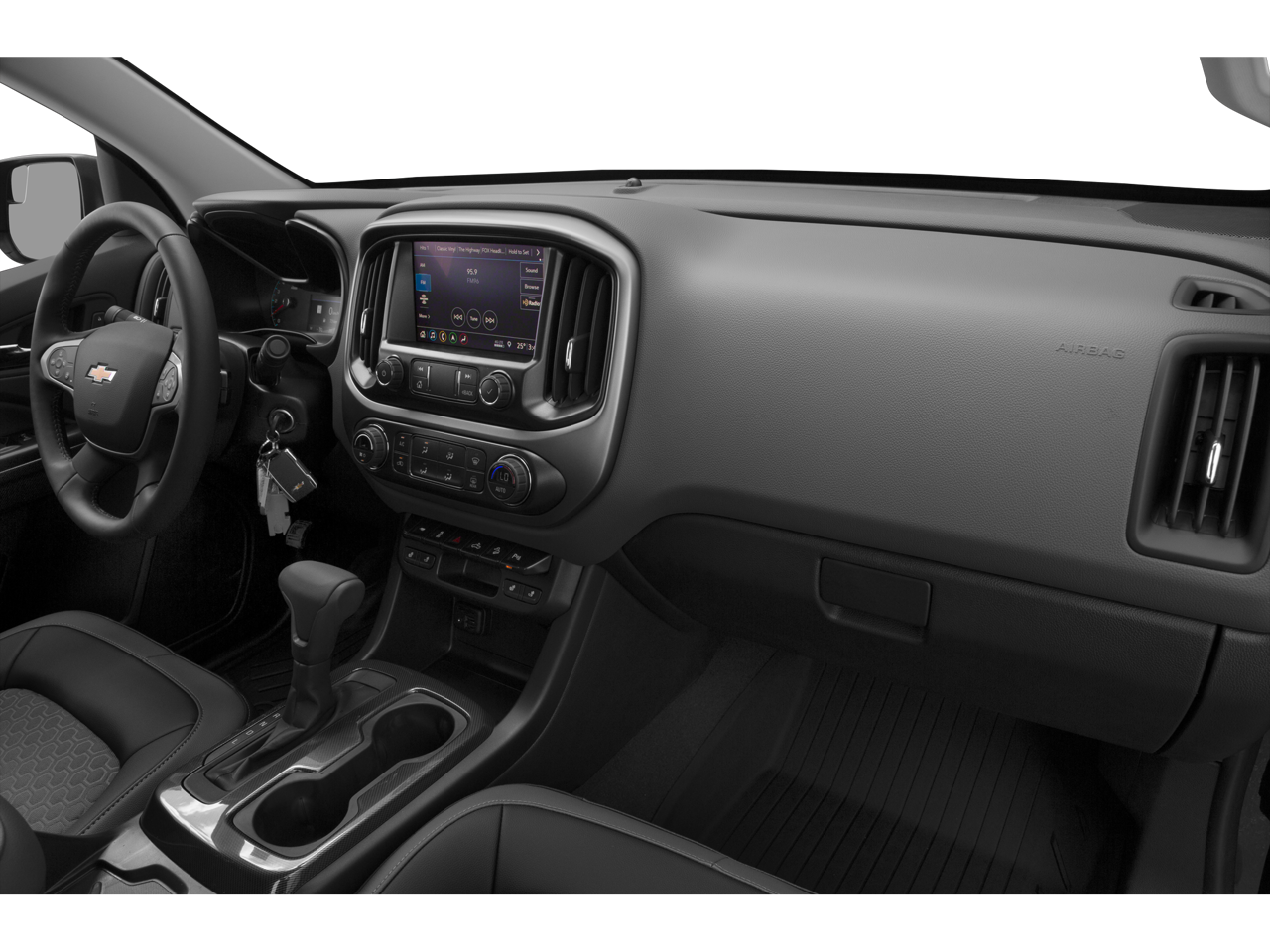 This Colorado is dressed in a quiet Black Exterior with a matching Black Interior.