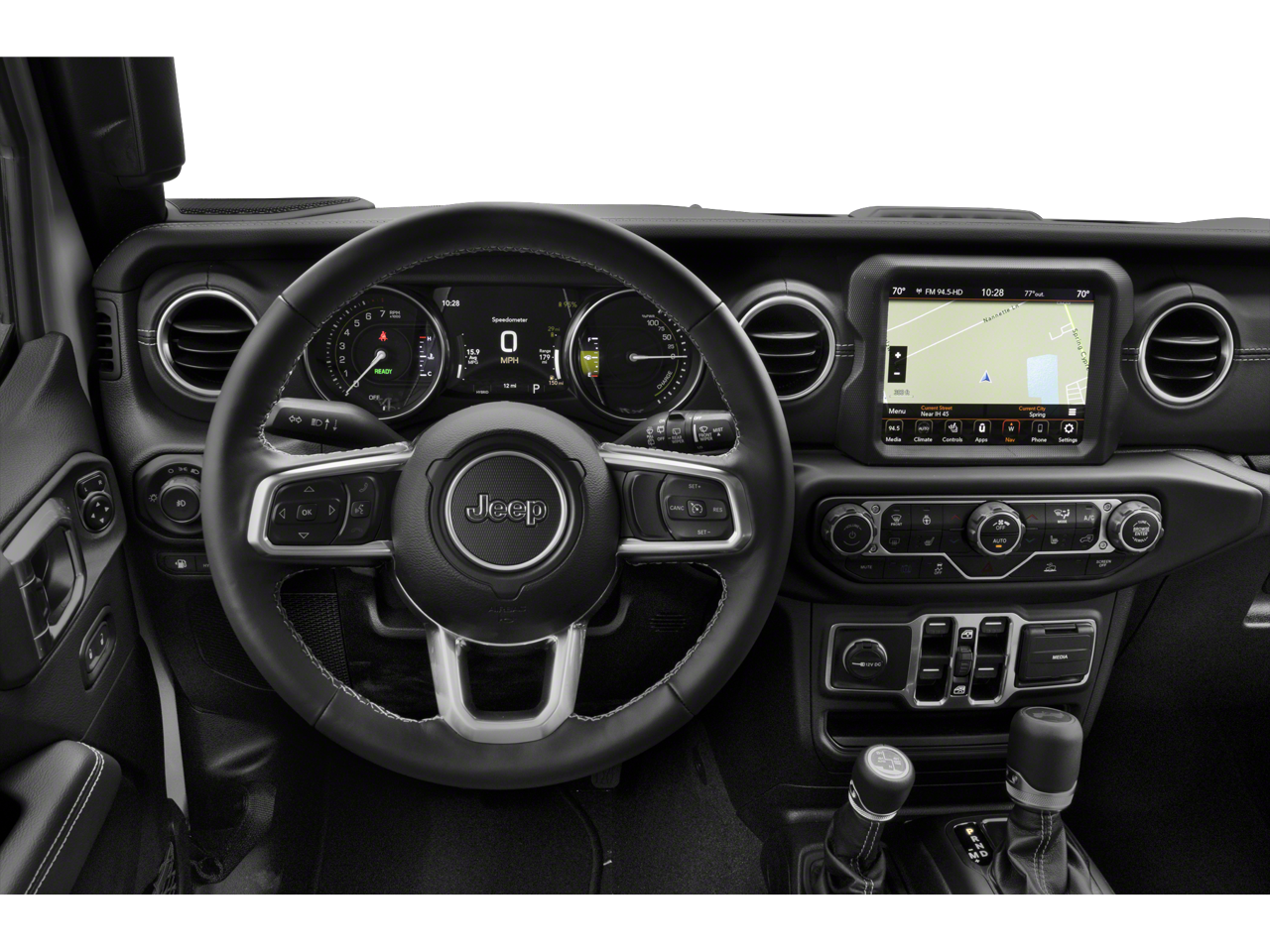 2021 Jeep Wrangler Unlimited Rubicon 4xe 2.0L I4 DOHC, 4-Wheel Disc Brakes, 4.10 Rear Axle Ratio, 7 & 4 Pin Wiring Harness, 700 Amp Maintenance Free Battery, 9 Speakers, ABS brakes, Air Conditioning, Alloy wheels, AM/FM radio: SiriusXM, Apple CarPlay/Android Auto, Auto-dimming Rear-View mirror, Automatic temperature control, Auxiliary Switches, Body Color 3-Piece Hard Top, Brake assist, Class II Receiver Hitch, Cold Weather Group, Compass, Delay-off headlights, Driver door bin, Driver vanity mirror, Dual front impact airbags, Dual front side impact airbags, Electronic Stability Control, Emergency communication system: SiriusXM Guardian, Freedom Panel Storage Bag, Front anti-roll bar, Front Bucket Seats, Front Center Armrest w/Storage, Front dual zone A/C, Front fog lights, Front License Plate Bracket, Front reading lights, Fully automatic headlights, Garage door transmitter, Heated door mirrors, Heated Front Seats, Heated Steering Wheel, Illuminated entry, Integrated roll-over protection, Leather steering wheel, Low tire pressure warning, Navigation System, Occupant sensing airbag, Outside temperature display, Panic alarm, ParkView Rear Back-Up Camera, Passenger door bin, Passenger vanity mirror, Performance Suspension, Power door mirrors, Power steering, Power windows, Premium Cloth Low-Back Bucket Seats, Quick Order Package 29V, Radio data system, Radio: Uconnect 4C Nav w/8.4 Display, Rear anti-roll bar, Rear reading lights, Rear Window Defroster, Rear Window Wiper/Washer, Remote keyless entry, Remote Proximity Keyless Entry, Remote Start System, Security system, Speed control, Split folding rear seat, Steering wheel mounted audio controls, Tachometer, Telescoping steering wheel, Tilt steering wheel, Traction control, Trailer Tow & HD Electrical Group, Trip computer, Variably intermittent wipers, Voltmeter, Wheels: 17 x 7.5 Machined/Painted Black, 2.0L I4 DOHC.