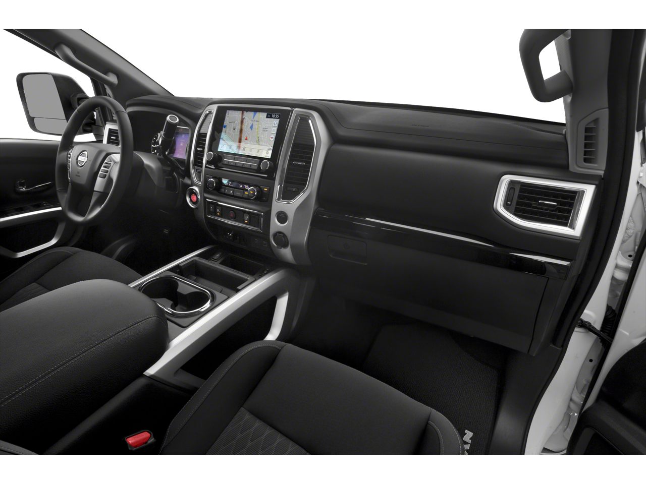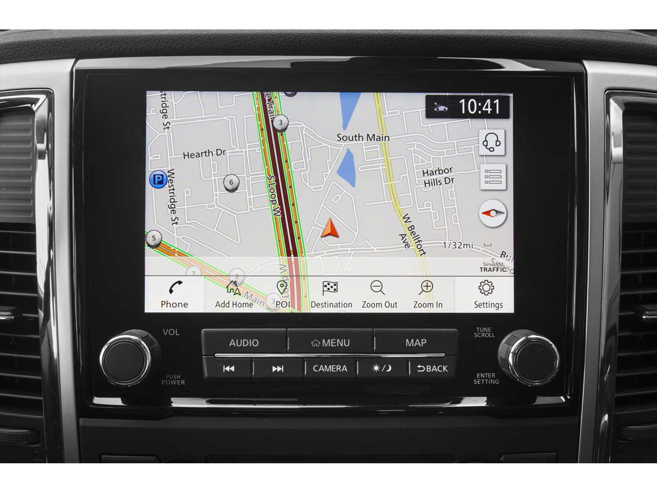 Inside the cabin, this Titan welcomes you to heated cloth front captain's chairs, a 9-inch touch-screen color display with Apple CarPlay and Android Auto, and a soft premium leather-wrapped steering wheel.
