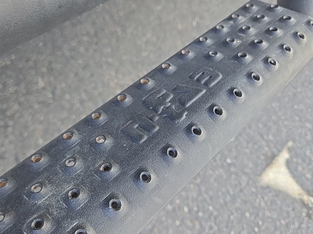- Chrome Rear Step Bumper w/Black Rub Strip/Fascia Accent