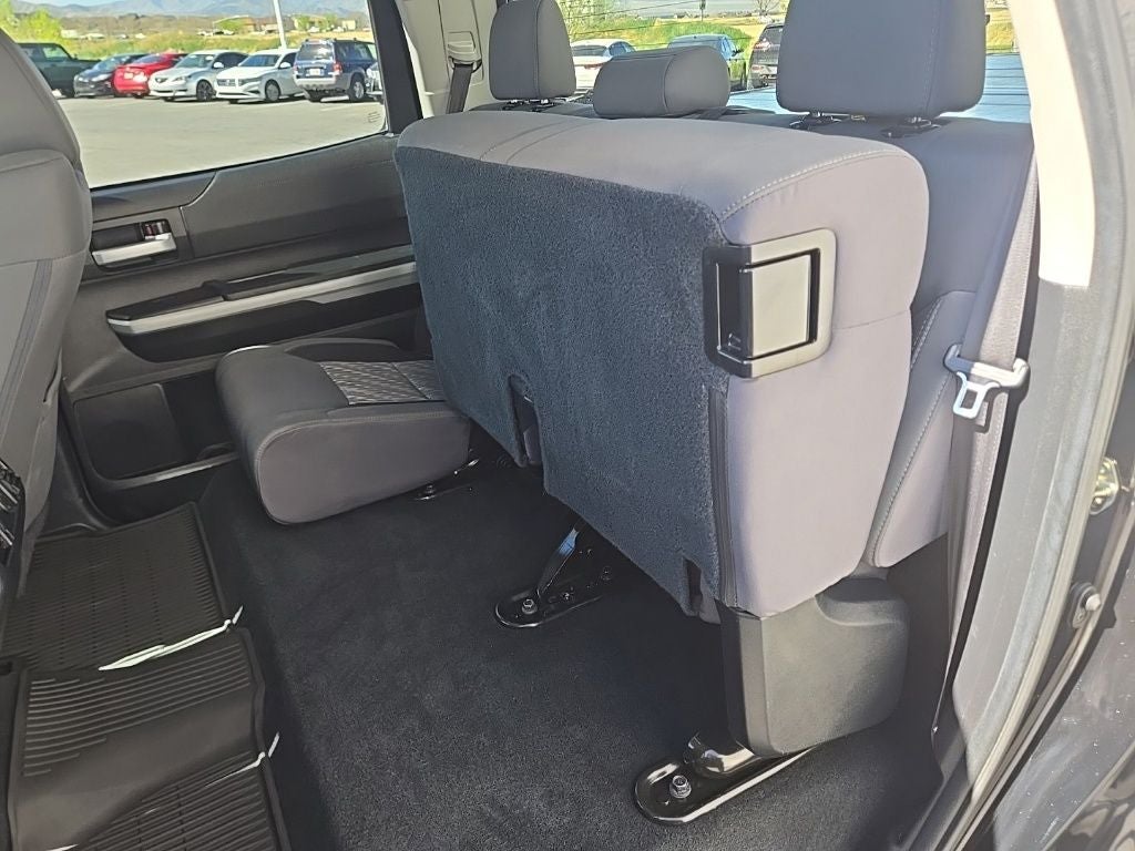 This Tundra is finished in Midnight Black Metallic with a Graphite interior. The SR5 is the sweet spot of the Tundra lineup, offering legendary V8 power and more versatility for daily driving and towing.