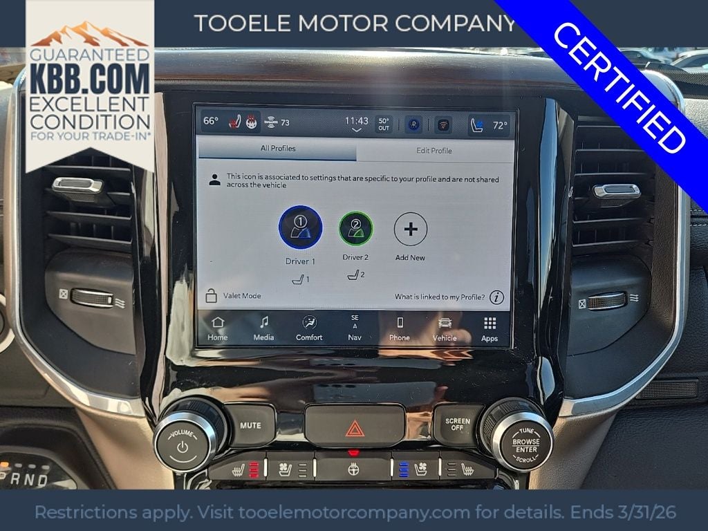 Remote-Proximity Keyless-Entry unlocks your Laramie as soon as you walk up. Inside the cabin, you're welcomed to Heated and Ventilated Premium Leather Seats, an 8.4-Inch Uconnect Touchscreen Display with Apple CarPlay and Android Auto capabilities, and a powerful 10-Speaker Premium Audio System with a Built-In Subwoofer.