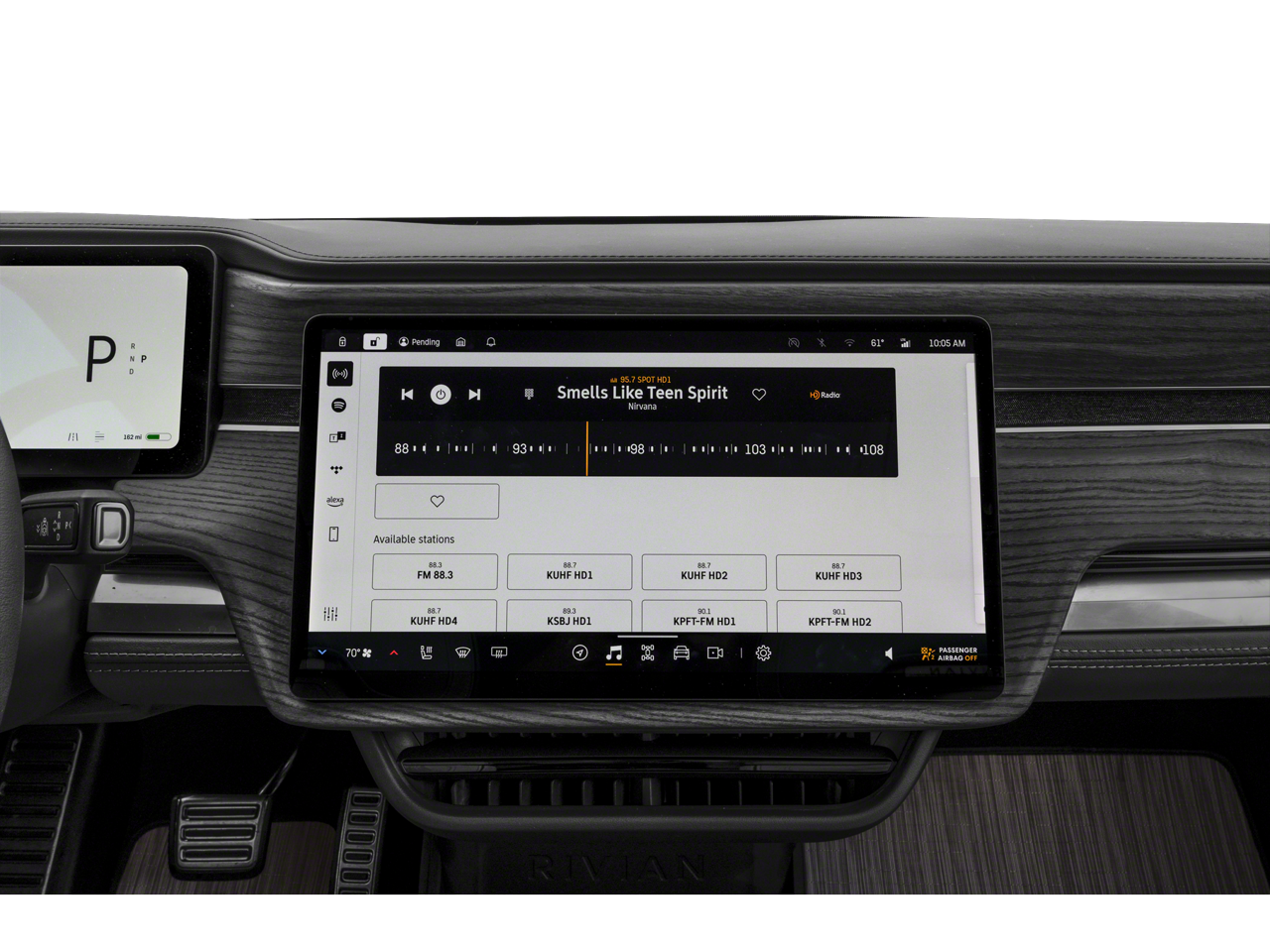 2023 Rivian R1S Launch Edition 3rd row seats: bench, 4-Wheel Disc Brakes, 7 Seat Interior, ABS brakes, Adaptive suspension, Air Conditioning, Alloy wheels, Audio memory, Auto High-beam Headlights, Auto tilt-away steering wheel, Auto-dimming door mirrors, Auto-dimming Rear-View mirror, Auto-leveling suspension, Automatic temperature control, Brake assist, Delay-off headlights, Driver door bin, Driver vanity mirror, Dual front impact airbags, Dual front side impact airbags, Electronic Stability Control, Emergency communication system, Exterior Parking Camera Rear, Four wheel independent suspension, Front anti-roll bar, Front Bucket Seats, Front Center Armrest, Front dual zone A/C, Front fog lights, Front reading lights, Fully automatic headlights, Heated & Ventilated Front Bucket Seats, Heated door mirrors, Heated front seats, Heated steering wheel, Illuminated entry, Knee airbag, Low tire pressure warning, Memory seat, Navigation System, Occupant sensing airbag, Outside temperature display, Overhead airbag, Panic alarm, Passenger door bin, Passenger vanity mirror, Perf Vegan Leather Seat Trim w/Patterned Stitching, Power door mirrors, Power driver seat, Power passenger seat, Power steering, Power windows, Radio: Rivian Elevation Audio by Meridian, Rain sensing wipers, Rear air conditioning, Rear anti-roll bar, Rear audio controls, Rear dual zone A/C, Rear fog lights, Rear reading lights, Rear seat center armrest, Rear window defroster, Rear window wiper, Remote keyless entry, Security system, Speed control, Speed-sensing steering, Split folding rear seat, Steering wheel memory, Steering wheel mounted audio controls, Telescoping steering wheel, Tilt steering wheel, Traction control, Trip computer, Turn signal indicator mirrors, Variably intermittent wipers, Ventilated front seats, Wheels: 20 All-Terrain Machined Aluminum. Clean CARFAX.